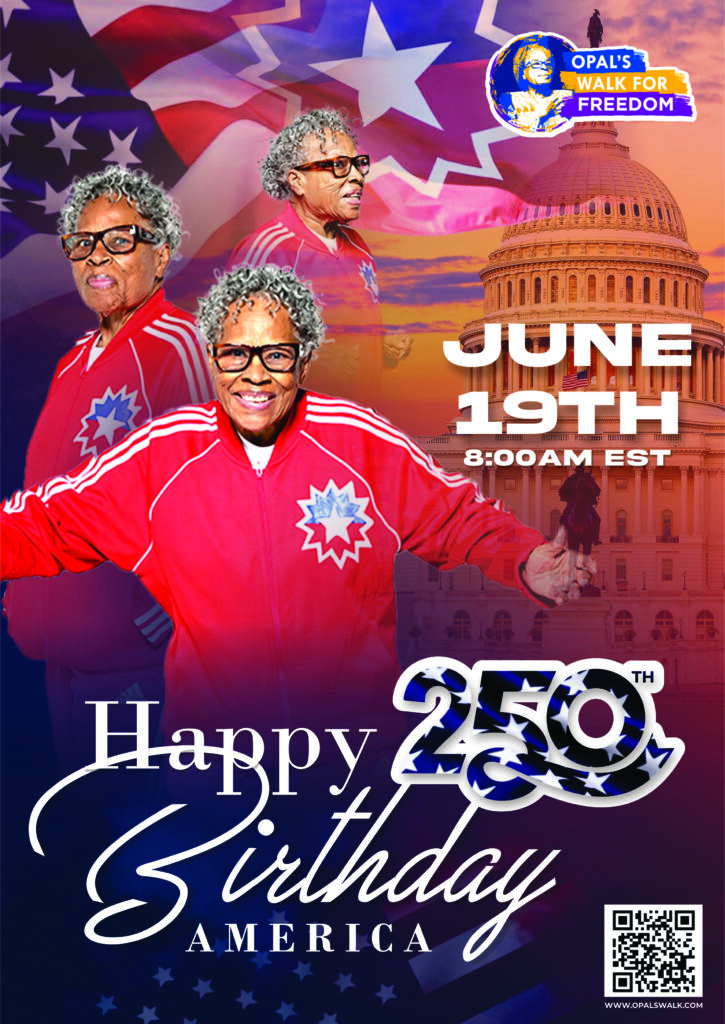 Ms. Opal is inviting everyone all across the country to walk 2.5 miles with her this Juneteenth in person or VIRTUALLY
